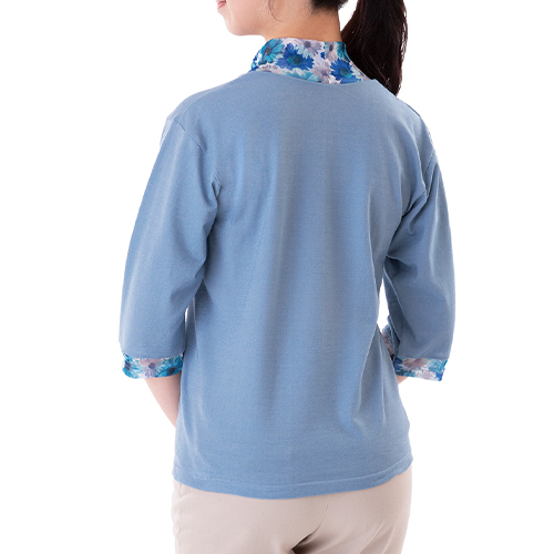 ひんやり涼感チュールネック7分袖Tシャツ M〜L ブルー