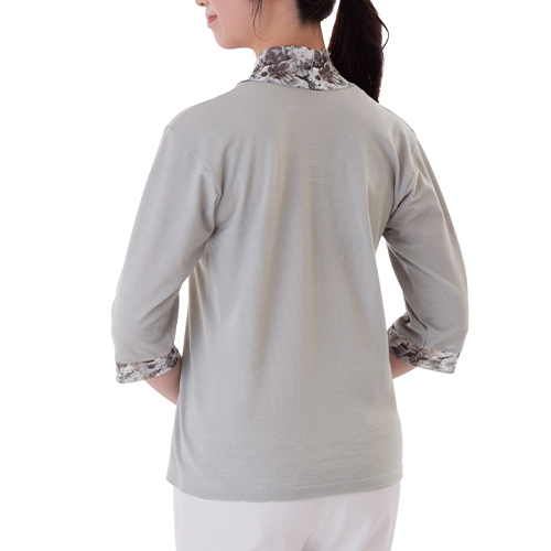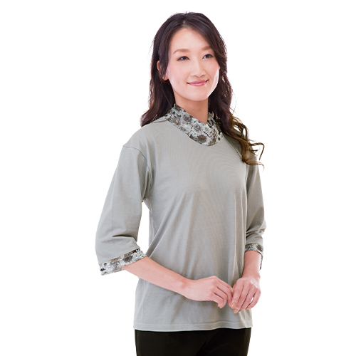 ひんやり涼感チュールネック7分袖Tシャツ M〜L グレー