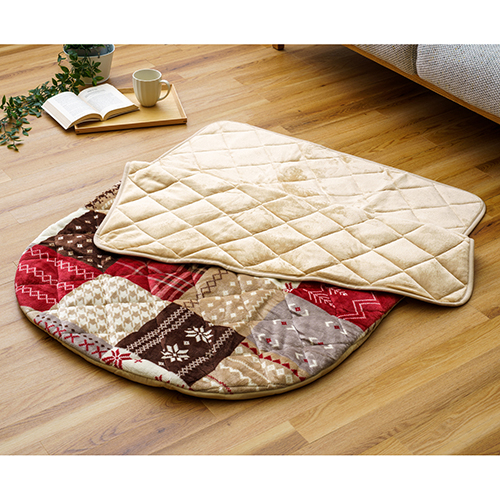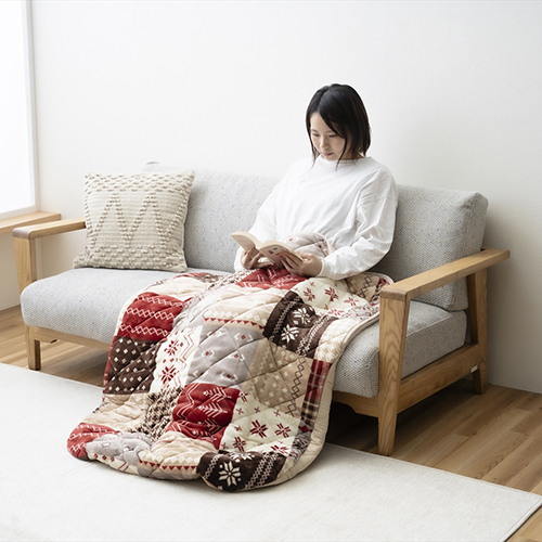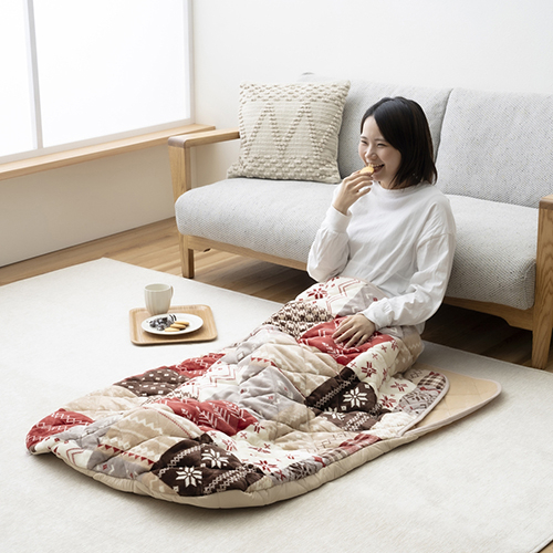 おひとり様用ポケットこたつ布団。ソファに座る時や、膝が冷たい時にさっと使えます。電気を使わないあたたかアイテムです。