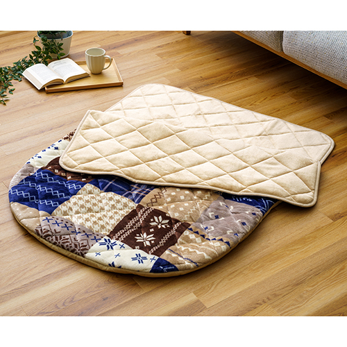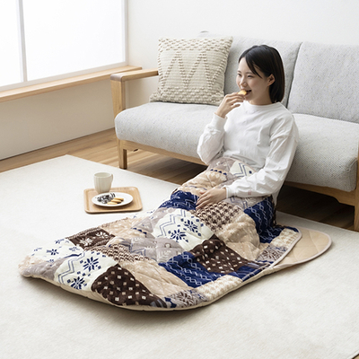 おひとり様用ポケットこたつ布団。ソファに座る時や、膝が冷たい時にさっと使えます。電気を使わないあたたかアイテムです。