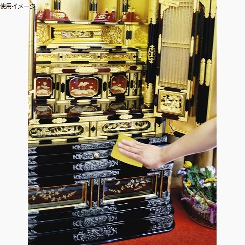 デリケートな仏壇塗装面のホコリや汚れ、指紋などを拭き取ります。仏壇仏具メーカーが最終クリーニングに使っているクロスを家庭用にカットした超極細繊維のクロスです。