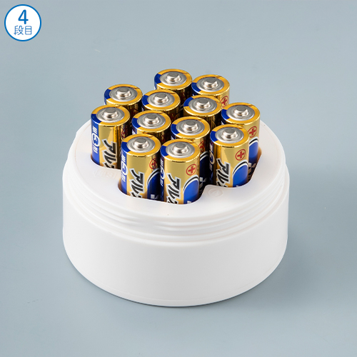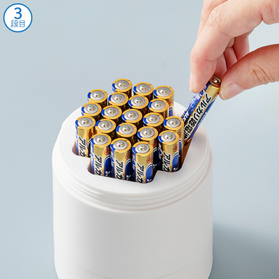 これ一つで、単3、単4どちらでも使用可能な卓上LEDランタン。電池残量チェッカー、乾電池式モバイル充電器、乾電池ストッカーとして使用可能。単4乾電池21本、単3乾電池12本収納可能。