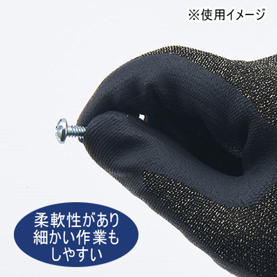 ●樹脂部:合成ゴム(ニトリルゴム)、繊維部:ナイロン・ポリエステル・アラミド・ステンレススチール・その他●全長:24.5cm、中指の長さ:7.8cm、手のひらまわり:19cm●重量(1双):55g●耐切創レベル:E、耐摩耗レベル:4●ベトナム製※防水、耐熱、絶縁機能はありません。※耐切創強度のある繊維を使用していますが、全く切れないものではありません。刃物等に直接触れる場合は、十分注意して使用して