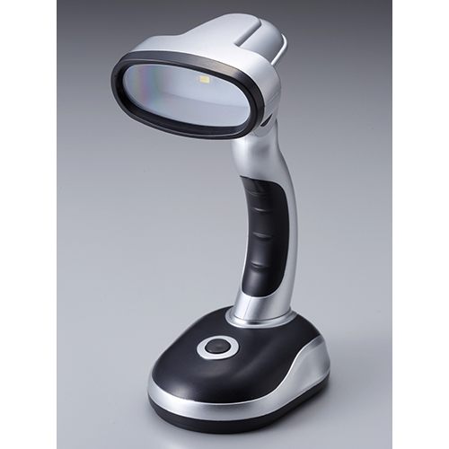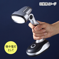 握りやすいグリップがついていて、持ち運びしやすいスタンドライト。ヘッドは上下方向に135度の角度調整できます。単3形乾電池3本使用のコードレスなので使う場所を選びません。