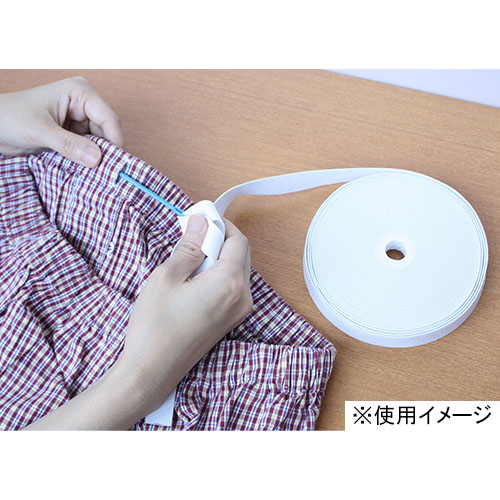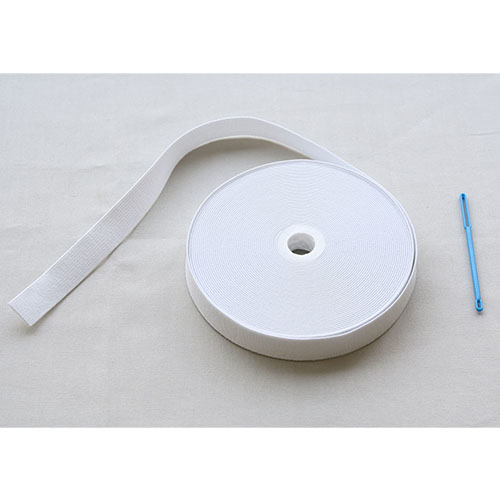 ●糸:ポリエステル、ゴム糸:天然ゴム、ゴムひも通し:ポリスチレン●ゴム:幅18mm×10m巻、ゴムひも通し:長さ8.5cm●付属:ゴムひも通し●日本製