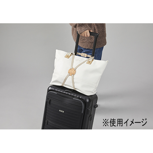 ●牛革、ゴムテープ:レーヨン・ポリエステル・ゴム●バンド:幅1.5×全長50cm、皮革部分:直径6cm●28g●固定するバッグの目安:幅15×高30cm●日本製※お使いになるキャリーケースによっては固定できない場合があります。革の部位により表面の風合いが異なります。