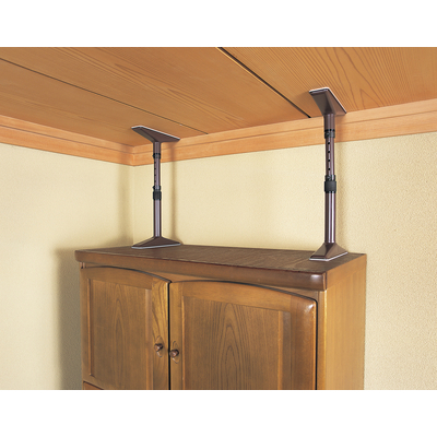●台座:軟鉄製薄板(メラミン樹脂焼付塗装)、支柱:構造用鋼管メラミン樹脂焼付塗装、調整ネジ・カラ—:炭素鋼ブラッククロメートメッキ、ブッシュ:ポリプロピレン、ラバー:発泡ポリエチレン、ロックキャップ:ニトリルゴム、補助板:エラストマー●本体:幅24×奥行5.5×高さ25〜35cm(1本)、補助板:幅5×奥行4.4×厚み0.3〜1cm(1枚)●家具と天井の間のサイズが、ちょうど35、50、80cmの