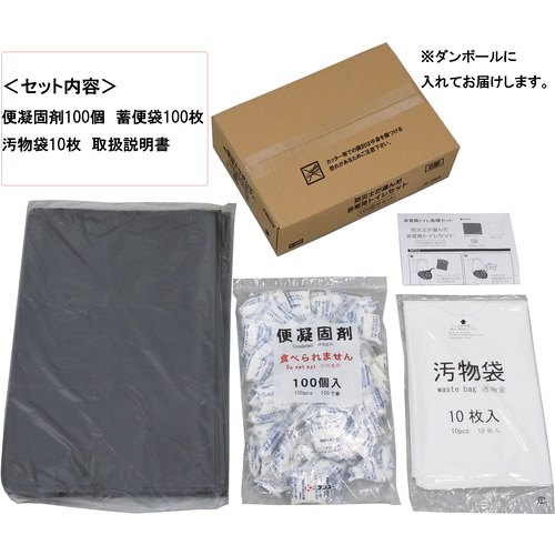 ●畜便袋:ポリエチレン、便凝固剤:高分子吸水樹脂、汚物袋:ポリエチレン●畜便袋(1袋):50×68cm、汚物袋(1袋):81×65cm、収納サイズ:27×37×11cm、3450g●便凝固剤9g●セット内容:畜便袋/100枚、便凝固剤/100包、汚物袋/10枚●凝固剤処理量:500cc(1包当たり)●日本製
