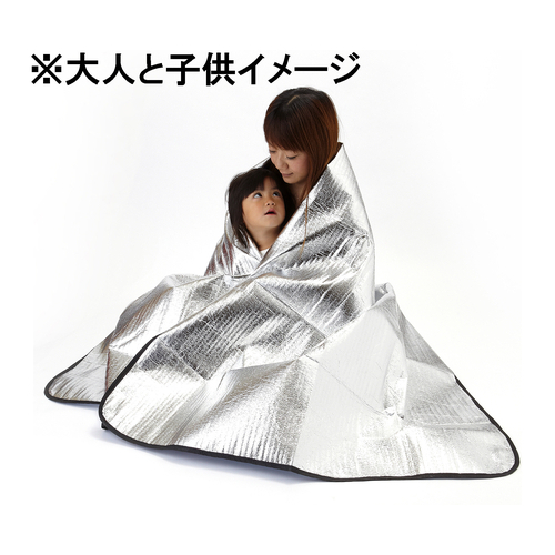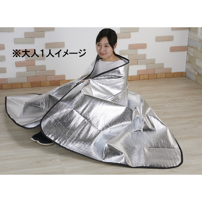 被っても敷いてもどちらでも使えるアルミシートです。災害時の備えにおおきな安心を。