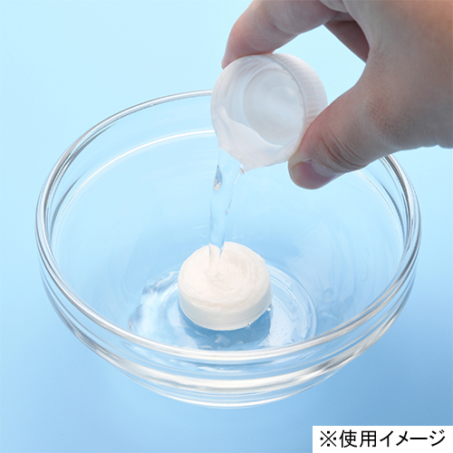ペットボトルのキャップ1杯分の水をかけるだけで、ふんわりふくらんで丈夫な不織布製のおしぼりになります。身体や手を拭くのに便利です。化粧水パックに使っても。薬剤不使用なので安心。ドライ状態なので長期保存できます。