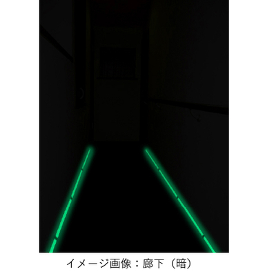 廊下や手すりに!出入り口の確認も大切。停電時・災害時、暗闇で役立つ光るテープ。停電時、火災時などに避難通路を明確に知らせてくれます。階段や手すりなどに貼れば、普段でも夜中の階段も安心。自分で使う長さだけ切って使える。めくって貼るだけ。