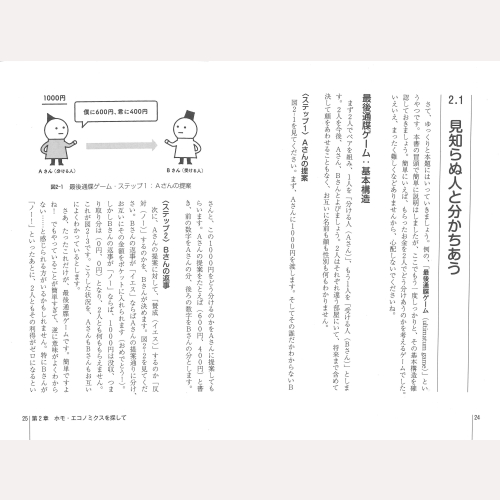 “最後通牒ゲーム”とは、プレイヤーAとBが駆け引きをする遊戯。Aは1000円渡されBとわける。案分を決めるのはA。999円と1円でもいい。Bはその適否を決める。Bが拒否すればゲーム終了。1000円は没収で二人とも1円も得られない。最適解はなに?  行動ゲーム理論は、経済学、心理学ほか多彩な学問分野で研究され、政治や社会で応用される。私も策士になれるだろうか?(き)