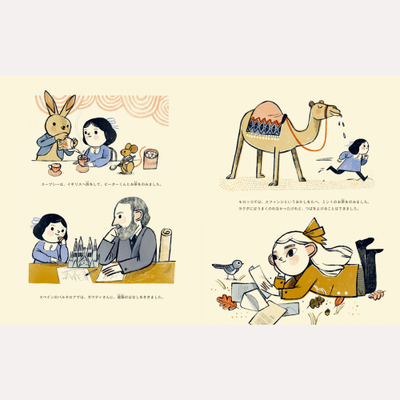 作家フランツ・カフカの有名なエピソードをもとに描かれた絵本です。ある日、カフカが恋人と公園を歩いていると、泣いている少女に出会いました。少女は大切にしていた人形をなくしてしまったのです。カフカは「人形は旅に出た」と伝え、代わりに手紙を書いて少女に届けました。理不尽な世界を描く印象の強いカフカ。その遊び心と深い思いやりにあふれた素顔に触れられる一冊です。(C)
