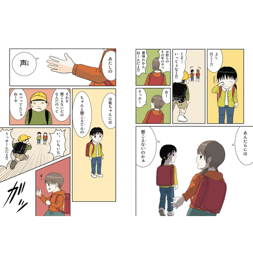 生まれてきたばかりの妹の耳が聞こえていないと知った姉は、家を飛び出しました。戻ってきた彼女が手にしていたのは、手話の本。小学生になった妹のまわりの子どもたちも、聞こえないことを屈託なく受け入れていきます。たとえ手話ができなくてもコミュニケーションはできると、友だちのために子どもたちが柔軟に行動する姿は、人として大事なことを改めて考えさせてくれます。(七)