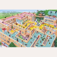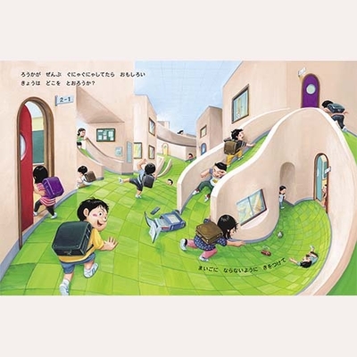 作者は『大ピンチずかん』の鈴木のりたけさん。前半は、入口が滝になっている滝学校など、思わず行ってみたくなるさまざまな学校が登場。親子で読むと、行くならどの学校がいいかなと盛り上がります。後半は、迷子になった校長先生探し。全ページに隠れキャラがおり、中学生も夢中になって探していました。随所に仕込まれたネタにも、思わずくすり。見返しに描かれた学校もお忘れなく。(あ)