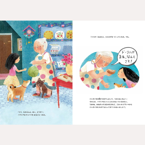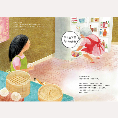 同じアパートに住む6人のおばあちゃんが、それぞれの国の料理を作っていますが、みんな材料が一つずつ足りず……。おばあちゃんと肉まんを作っていたリリが、借り物競争のようにアパートの階段を行ったり来たりしながら大活躍。最後は6種類のお国料理を持ち寄ってパーティーに。各国の文化の違いを料理や言葉、服装などからも感じられる楽しい絵本。おばあちゃんの肉まんレシピ付き!(あ)