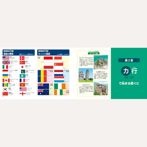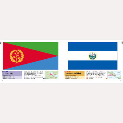 わが家の国旗好き(中2&小2)は、この本に一瞬で心奪われ、ひたすら紙に国旗を描き写していました。特にオススメな点は、国旗の細かな部分までじっくり見ることができるところ!A4判横いっぱいに国旗が掲載され、小さな模様の一つひとつまでしっかり肉眼で捉えることができます。国旗に込められた意味や周辺諸国を含む拡大地図なども掲載され、盛りだくさんの一冊です。(楽)