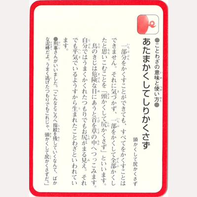「石の上にも三年」「えびでたいをつる」「ねこに小判」など、子どもたちに親しみやすいことわざを44選びました。いもとようこさんのかわいらしいイラストでことわざを表現。楽しいかるた遊びで言語への興味を引き出し、言葉をより豊かにします。 絵札裏面にはことわざの意味と使い方がわかる解説つき。 【内容】カード:読み札44枚、絵札44枚 予備札(白札)1枚入り