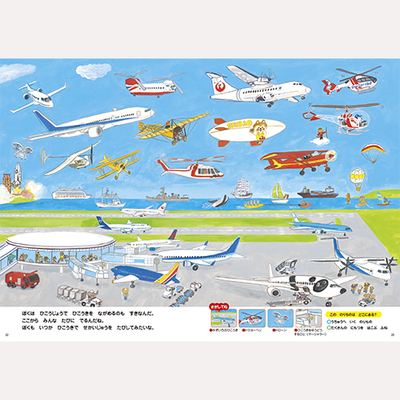 はたらく車、電車、新幹線、飛行機、船…子どもが大好きな乗り物がいろいろ登場します。乗り物や、さがし絵を好きなお子さんへのプレゼントにも最適!