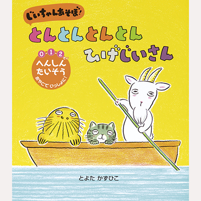 やぎ・ねこ・あざらしの、3びきの「ひげじいさん」。おなじみの手遊び歌で愉快なお話が展開していきます。
