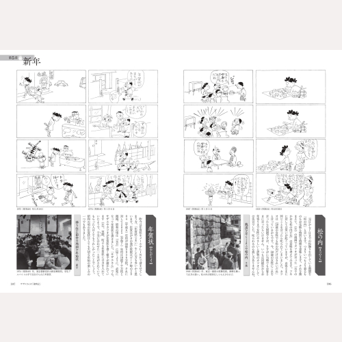 新聞紙上に連載されていた漫画「サザエさん」を春・夏・秋・冬・新年の季語別に分類し、同じ季語が使われた俳句・季語の世界を懐かしい写真と共に掲載。漫画・俳句・写真を同時に味わうことで、令和の現在では失われつつある豊かな四季に思いを寄せます。