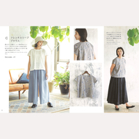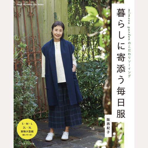 緑に囲まれた洋裁教室mimosa gardenの阪西紀子さんが、ブラウス、チュニック、ワンピースなど普段使いしやすいシンプルな洋服と小物の作り方を紹介。S・M・L・2L・3Lの縫い代つき実物大型紙つき。