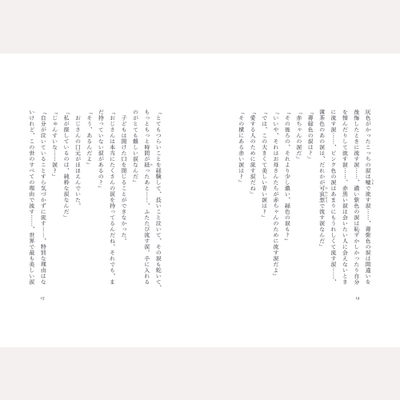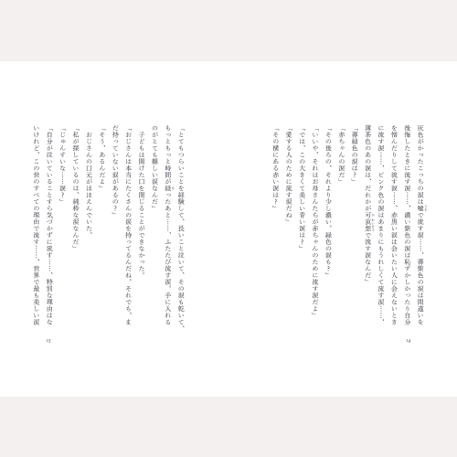 この世で最も美しく、すべての人のこころを濡らすという「純粋な涙」を探して…。童話と銘打ちながらも、深い絶望や痛みを描き、そこを通過して見える光を描くハン・ガンの作品世界を色濃く感じられる作品です。 (C)junaida