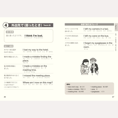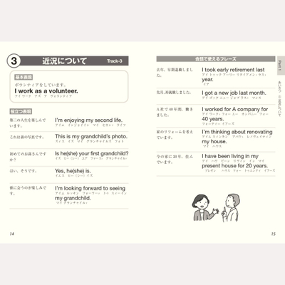 シニアの方がゆっくり学べる、やさしい日常英会話を紹介。日常生活、旅行でよく使う会話フレーズを掲載。文字は大きめで、70場面の各フレーズにカタカナルビつき。各フレーズを「日本語→英語」の順に音声収録しています。CD(約78分)・ダウンロードどちらでも音声を確認できます。