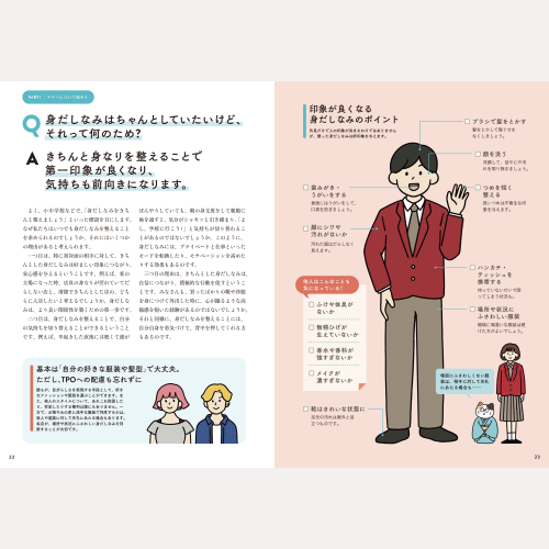 中高生の声を元に33の質問を取り上げ、見開きで1テーマが解説されています。「かたち」を覚えるのではなく、相手を思いやることがマナーの基本とのこと。友だちづきあいやSNSでの情報発信、冠婚葬祭や国際マナーにも触れられています。高校生になると、アルバイトや留学など親と離れて行動する機会も増えます。自分の身を守るためにも、中学生頃から親子で学ぶのにぴったりな内容です。(由)
