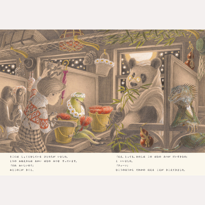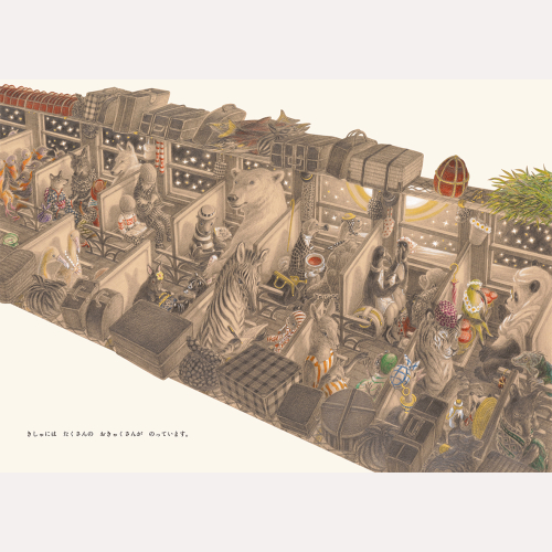 広い大地を走る汽車。汽車には、ドードーの紳士、卵を大事に抱えたオオウミガラスの夫婦、リョコウバトの団体客など、たくさんの乗客が乗っています。乗客たちは次々と下車し、車内は寂しくなっていきます。絶滅動物たちを描いた創作絵本です。