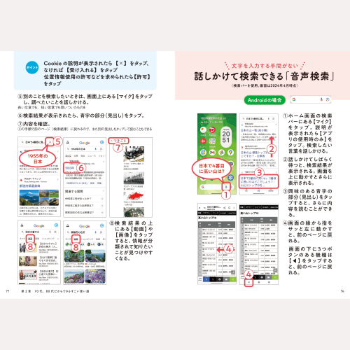 1万5000人のシニア世代にスマホを教えてきたプロが伝授! カメラ機能をメモやルーペ代わりに、録音機能を備忘録にといった使い道や、LINE、スマホ決済の方法など、知っておきたいスマホの便利な使い方を紹介。iPhone/Android対応。  ※本書の情報は2024年4月時点のものです。