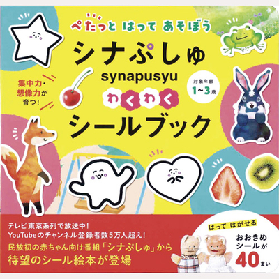 本の中にシールを貼って、遊びながら考える力を育みます。民放初の赤ちゃん向け人気番組「シナぷしゅ」からできた、初めてのシールブックです。