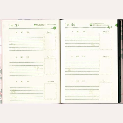 「今日のつぶやき」「日記を彩るかわいいイラスト」など、楽しく日記を続けられる付録が満載!