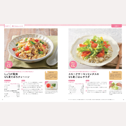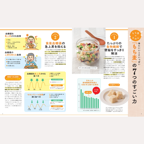 もち麦は白米よりコスパがよくヘルシー。豊富な水溶性食物繊維が糖と脂質の吸収を抑え、ダイエットにも効果的。そんなもち麦をおいしく食べられる80レシピを紹介します。 ※効果には個人差があります。 ※本書は同社刊『簡単おいしい! もち麦ダイエットレシピ』(2016年10月)、『もち麦でおいしくやせる! 健康になる!』(2019年4月)を再編集し、加筆・改訂したものです