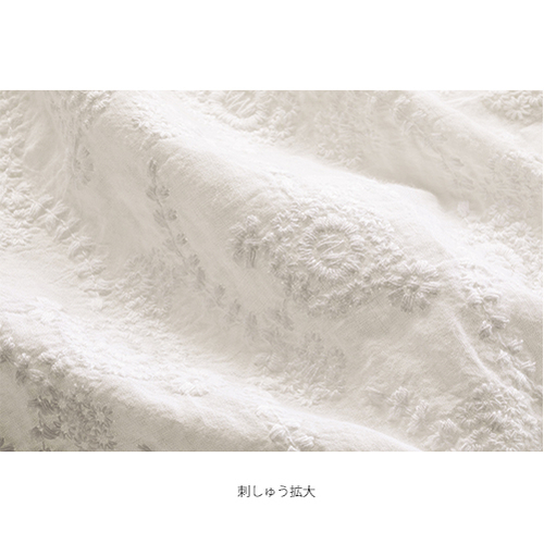 ●綿100%、刺しゅう糸:綿100%、レース部分:綿100%●前開き全開ボタン(7個)、袖口ゴム仕様●中国製(開封後の返品可)※柄の出方が異なる場合があります。※透け感のある素材を使用しているため、インナーの着用をおすすめ致します。