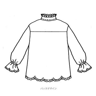 配色ボタンと袖口のフリルが可愛さを演出します。