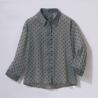 フロッキードット柄シアーシャツ チャコールグレーブラック M
