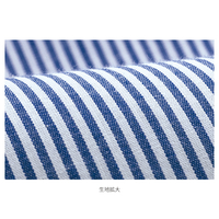 フリル襟ストライプ ロングブラウス ブルー系 L