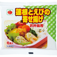 たらのすり身に、れんこんとえびを混ぜた一口サイズの寄せ揚げです。揚げ済みなので、電子レンジなどで温め、お弁当に。