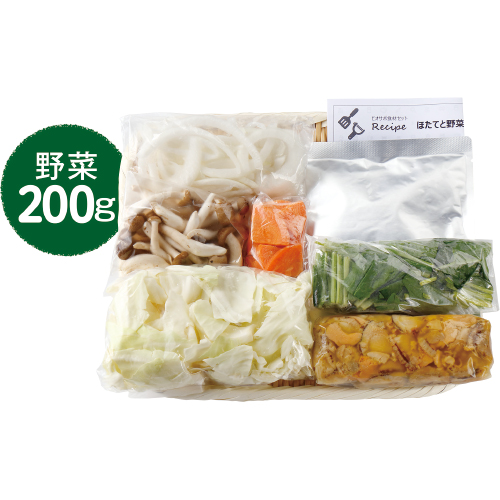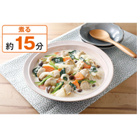 ほたてオイル煮とキャベツなどの具材を添付のグラタンソースと家庭で用意する牛乳で煮ます。ほたてはビタミンB12や葉酸が豊富。野菜にも含まれる葉酸や鉄と合わせて、貧血予防に。2〜3人分。調理時間:約15分。家庭で用意するもの:バター大さじ1、牛乳200ml、塩・こしょう各少々。調理法:煮る※使い切りのセットです。レシピ付き。必ず加熱してください。消費期限はお届け日の翌日です。利用促進のため2月4回価格に対し18円引き。