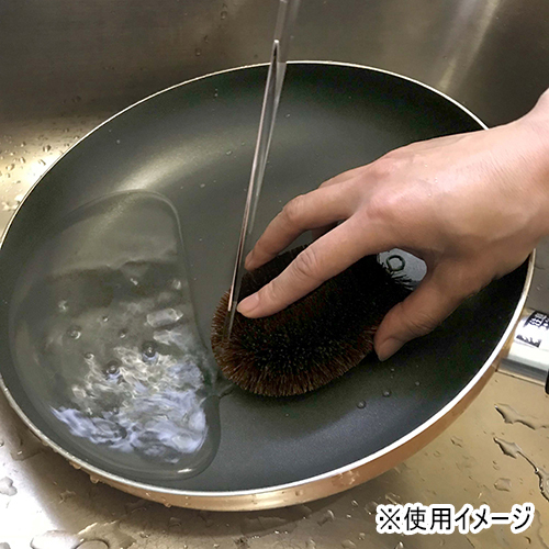 一般的なタワシで使われているパーム繊維よりも細くやわらかい繊維を使用。手に優しく、食器なども傷つけにくくなっています。