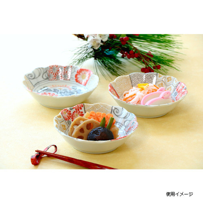 副菜の盛りつけにほどよい深さの多用鉢。お祝いやおもてなしの席にもぴったり。