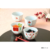 赤絵はすべて手描きのため、それぞれに味があります。普段使い、ハレの日、どちらにも馴染む上品なデザインで、お浸しや煮物、香の物など、幅広く使えます。
