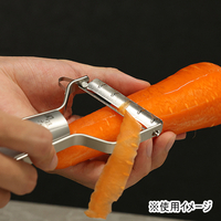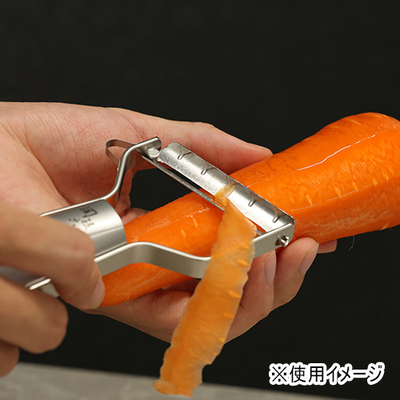鋭利な刃付けを施したオールステンレス製のピーラーです。切れ味を追求し刃の設置角度を20度に設定しています。しっかり握れる優しい手当たりのハンドル形状です。