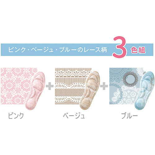 足裏ふわふわインソール レース柄3色組