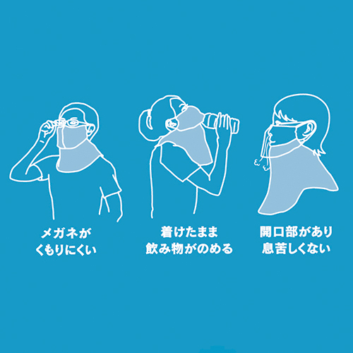 目元に沿ったデザインで、紫外線からお肌を守ります。何度洗濯してもUVカット効果が持続します。優れた遮熱性クーリング効果でマスク内の温度上昇を抑えます。形態安定テープ入りで、スポーツでも息苦しくなく使えます。顔・首の日焼け予防、敏感肌対策などに。アウトドア、農作業、屋外スポーツなどの場面に。