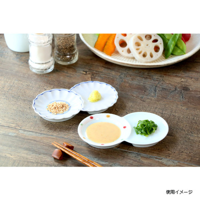 漬物や薬味、珍味などのちょっとした一品や取皿として。お醤油やたれを一方に入れても便利です。