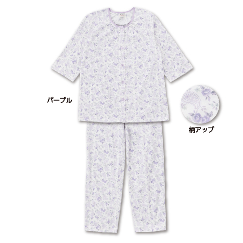 トップ > 新規品 > レディス天竺ニットパジャマ(花ペイズリー)L パープル