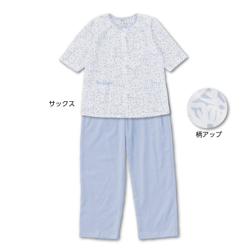 トップ > 新規品 > レディス高島ちぢみパジャマ(マーガレット)L サックス