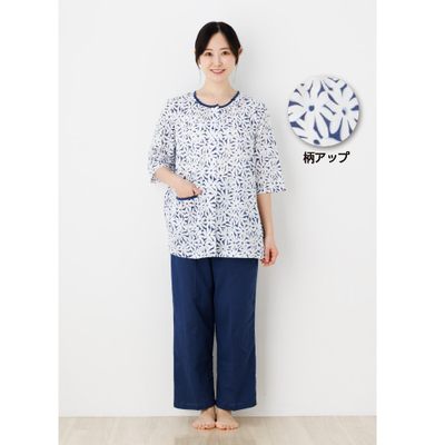 レディス高島ちぢみパジャマ(マーガレット)M ネイビー